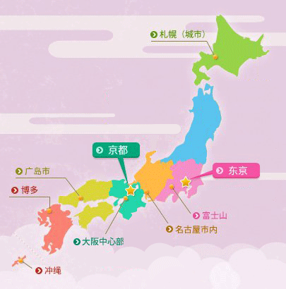 札幌(城市) 东京 京都 富士山 广岛市 博多 名古屋市内 大阪中心部 沖縄 札幌 仙台 东京 京都 富士山 白马 广岛 福岡 名古屋 大阪 冲绳